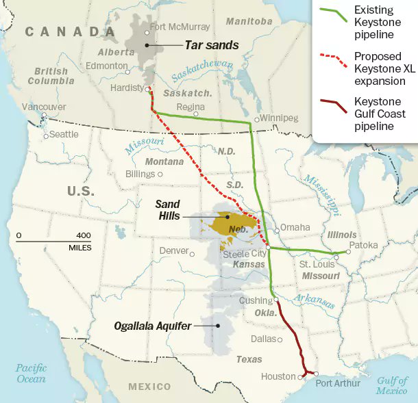 2. Keystone XL is proposed, but missing a permit in Nebraska that will be decided on Monday #NoKXL