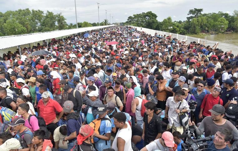 Intussen dreigt Trump landen als Honduras Guatemala en El Salvador met het inhouden van hulp, daar zij niets hebben ondernomen tegen deze onafzienbare karavaan met wanhopige mensen... Van Mexico eist Trump dat dit land de karavaan stopt, echter zelfs zijn eigen administratie ziet dondersgoed dat een dergelijke stroom mensen niet anders te stoppen is dan met grof geweld.....